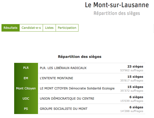 Le Mont citoyen a obtenu 15 sièges, soit presque un quart des 65 sièges du Conseil Communal.