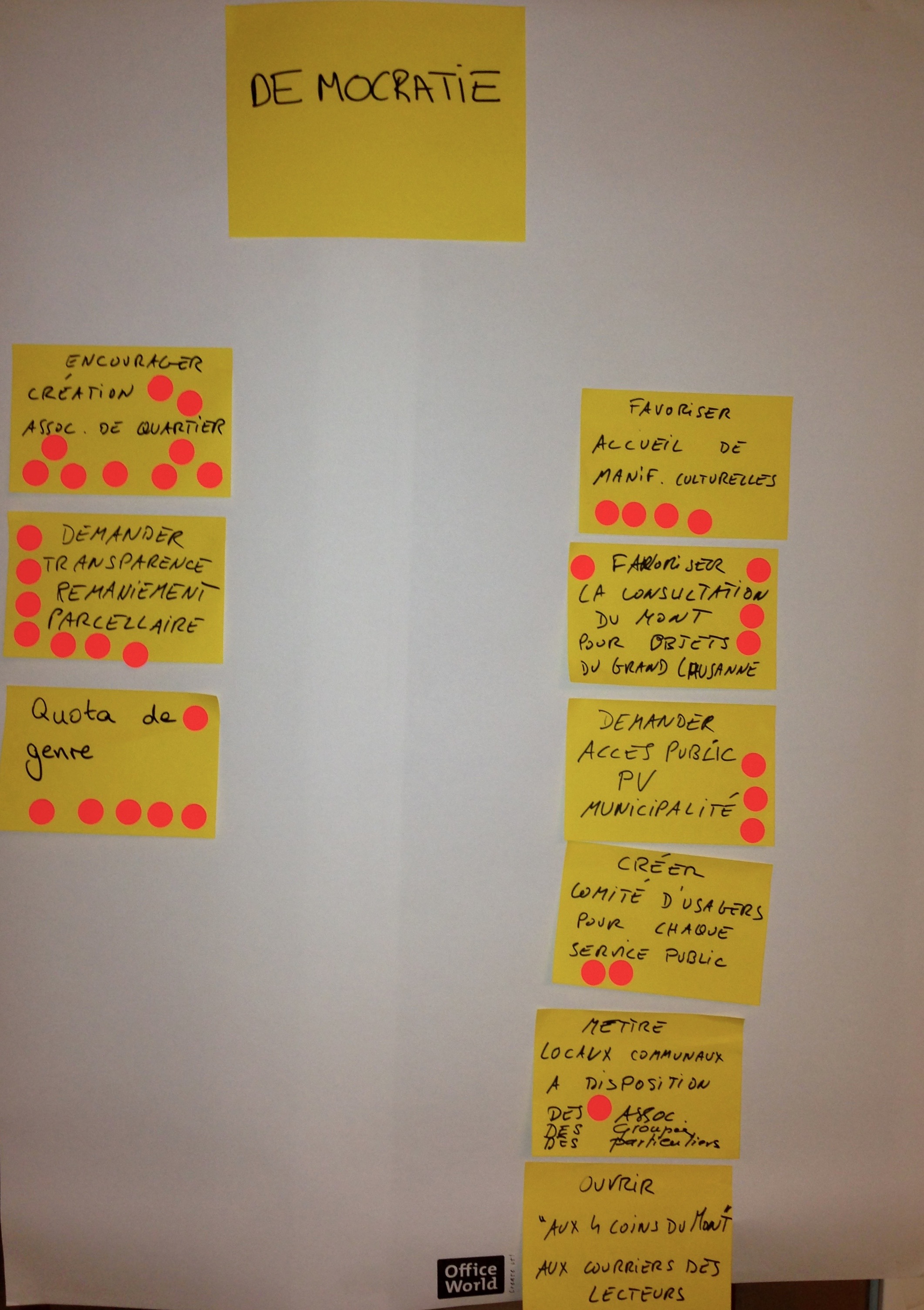 - Le premier groupe vote pour désigner ses meilleures propositions sur le pilier Démocratie.